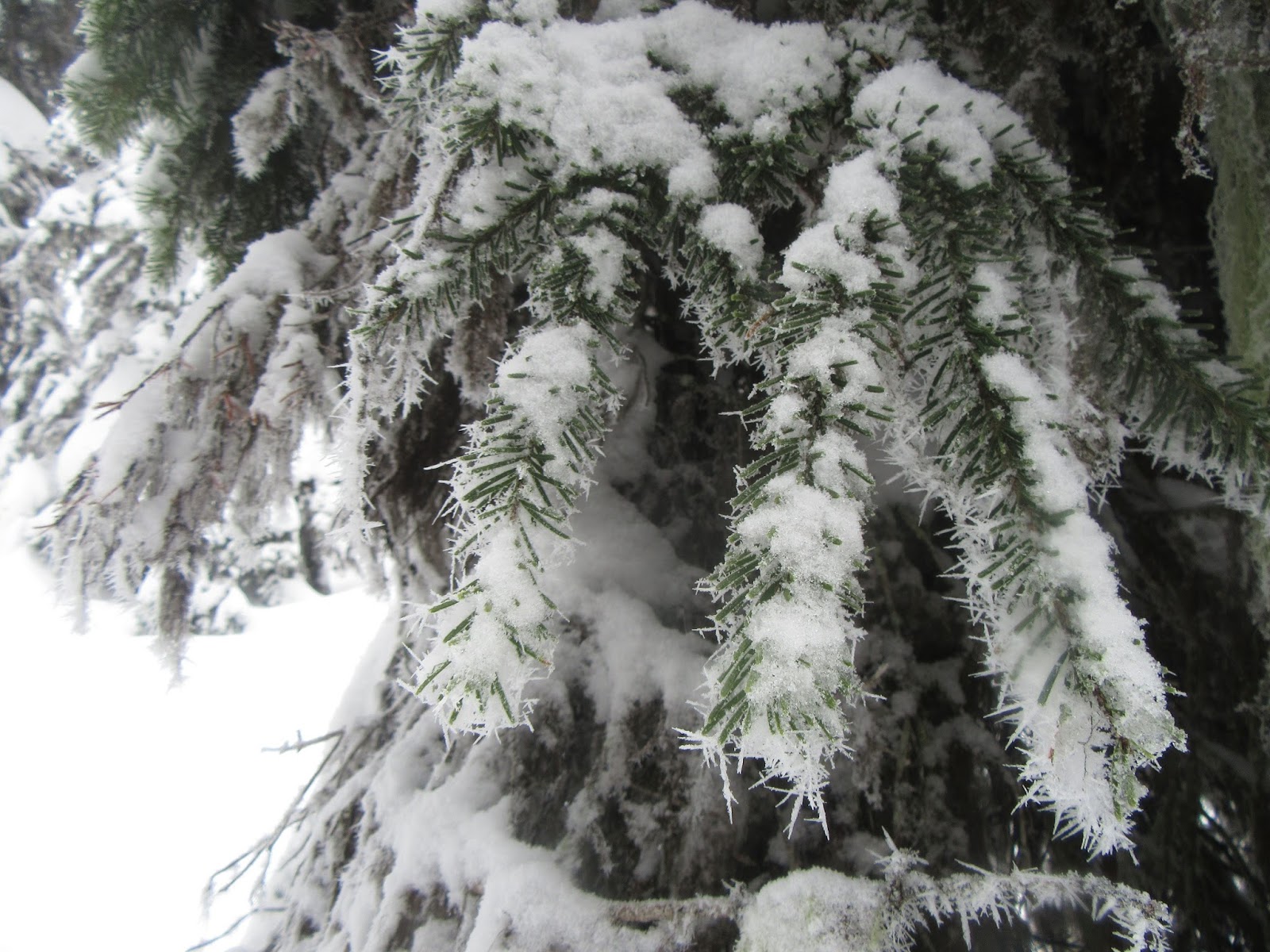 The photo above I took today while hiking of the Hoarfrost on the pine needles, it shows the cold winter conditions we have been getting lately even though it is spring now.